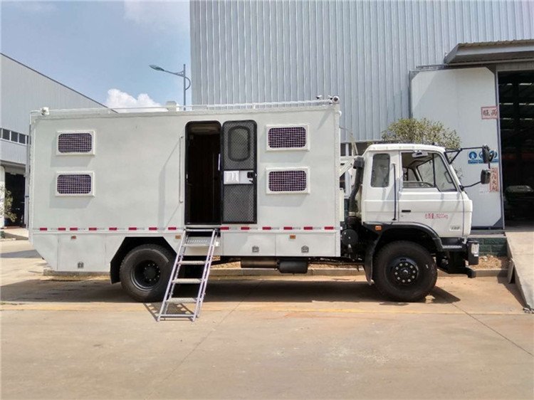 底盘配置:东风经典153驾驶室,机械式座椅,电动玻璃,空调,配康明斯ISB190 50国五排放发动机,六档变速箱,东风德纳车桥,前桥3.8吨,后桥10吨。 上装配置: 由保温厢体、空气调节系统、宿营设施、影音系统、电气系统、通风换气系统、洗漱和卫生设施、警灯及报警系统、附助装置及外观装饰等组成。配备前储物柜、后储物柜、液晶电视机应急灯、顶灯、顶置空调、床垫、被褥等、床铺上下梯、安全保险带、电源插口等,细节精致。外置燃油加热器、顶护栏、前爬梯、隐藏抽拉梯、专用房车门、专用玻璃滑窗、警示灯等。