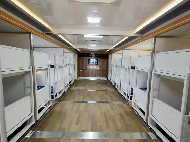 官兵远离营区执行抗洪抢险等野外任务,普通载客车不能满足宿营需要,针对特殊行业定制开发的宿营车,集人员输送和休息为一体,该车型有效解决全卧铺车载客量小、全座位车不便于休息的矛盾,很好的满足 警系统的客户需求,提升了输送及宿营的舒适度。